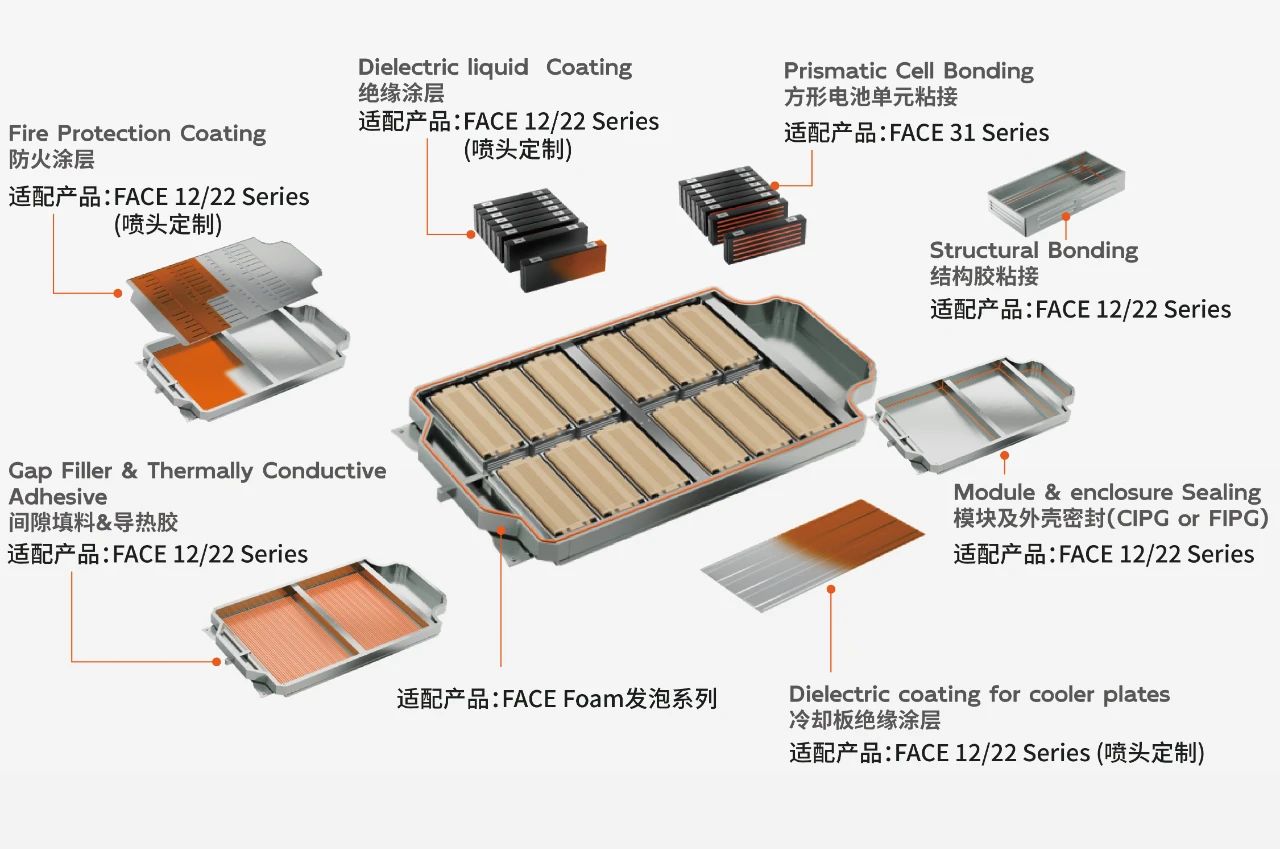 DETECH has leading technology in 2K silicone foaming, especially its FACE Foam 120Sil platform, which performs well in battery sealing applications. This platform is specially designed for 2K silicone foaming and is widely used in the sealing and protection of electric vehicle batteries.